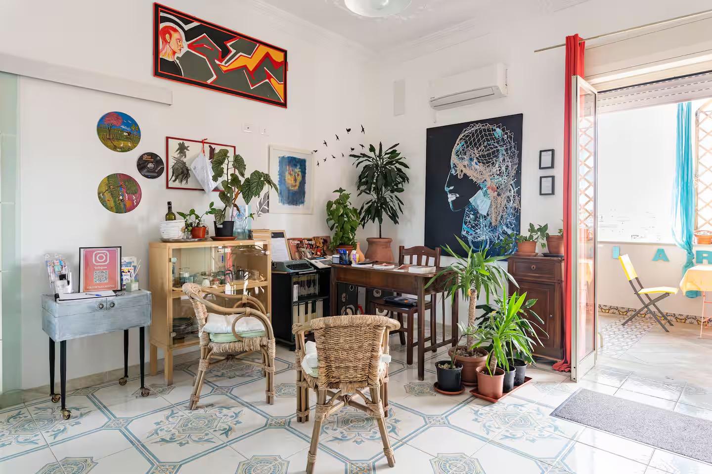 Rosario è un musicista e pittore, ha decorato il suo bnb seguendo un percorso tra il decadente e il design. Segno che contraddistingue le contraddizioni di questa città ed in particolare il quartiere dell'albergheria che ospita un mercato storico millenario chiamato BALLARO' famoso in tutto il mondo per i suoi colori e profumi.